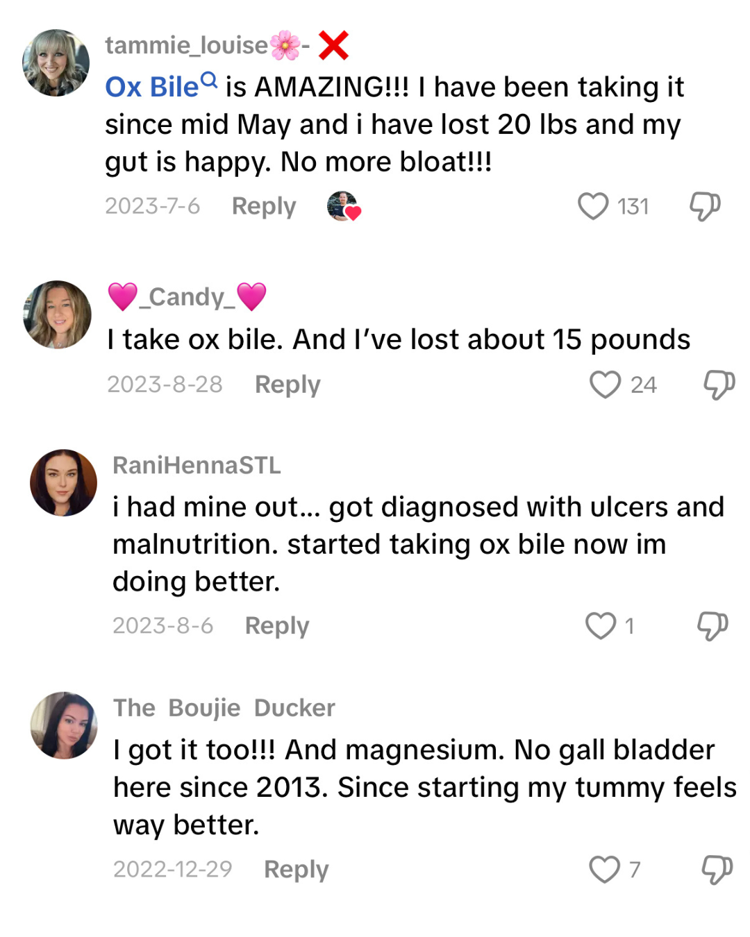 👉No, ox bile itself does not make you gain weight. It doesn’t contain calories, fats, or hormones that promote fat storage.